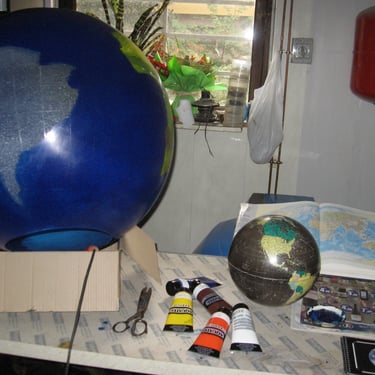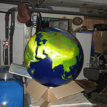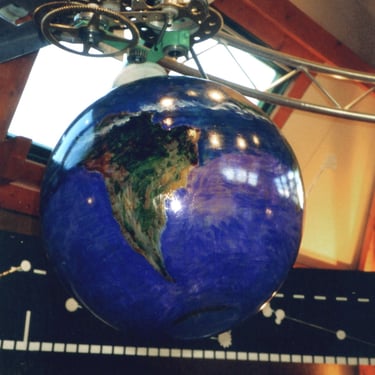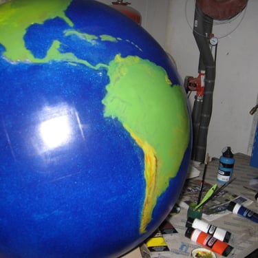 Une sphère en acrylique transparente a été utilisée comme base à la conception du Globe Terrestre. Pour tracer les méridiens et les parallèles, Jean-Michel Rohr a conçu un gabarit de traçage avec un plateau diviseur (ce plateau est muni du manivelle équipée d'un disque divisé à 360° permettant un positionnement précis). Entièrement peint à la main, ce Globe Terrestre fourmille de détails bluffant, le tout à l'échelle bien sûr.
